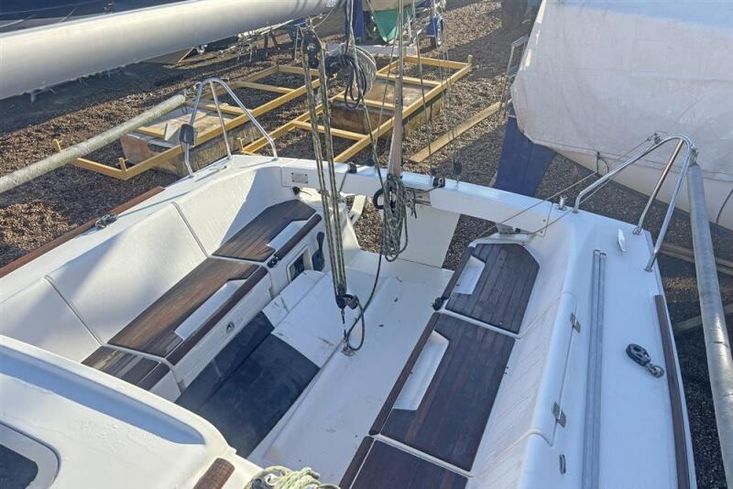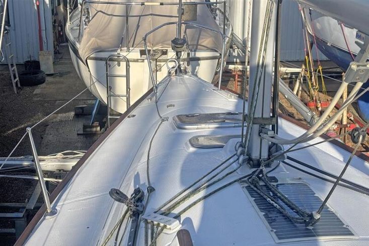 Masthead rigged Bermudan sloop. Anodised aluminium mast and boom. Stainless steel standing rigging (2007). Backstay adjuster. Terylene running rigging. Slab reefing mainsail with lazyjacks. Facnor headsail furling system. Two sheet/control line winches. Lines led aft to cockpit. Spinnaker pole.