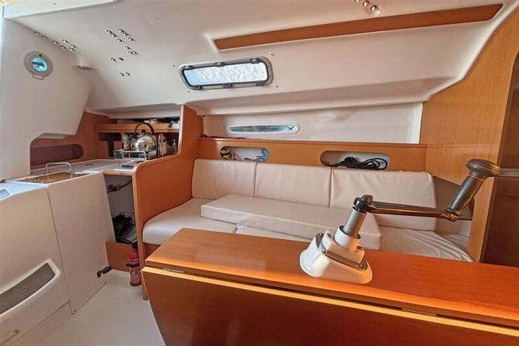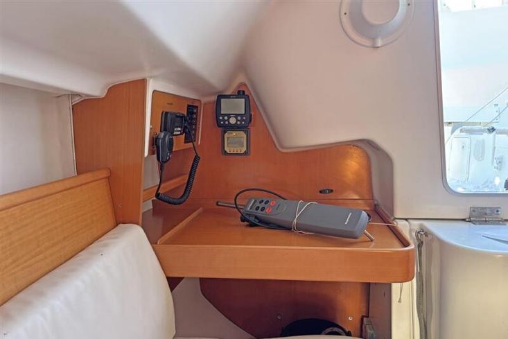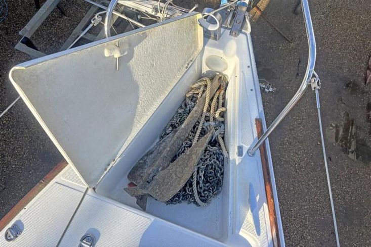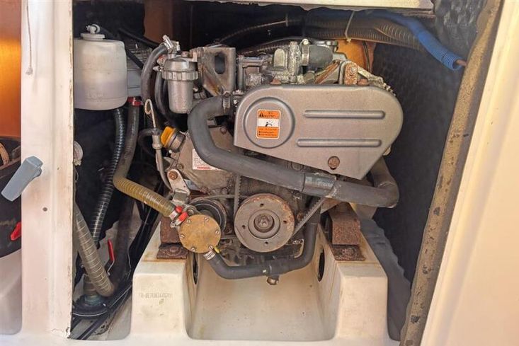 Located behind the companionway, is the Yanmar 2YM15 marine diesel engine. Twin cylinder, naturally aspirated, 15hp. Electric start. Freshwater cooled via a heat exchanger. Shaft drive to a three-blade propeller. Rope cutter. Single lever control. 30 litre fuel capacity.