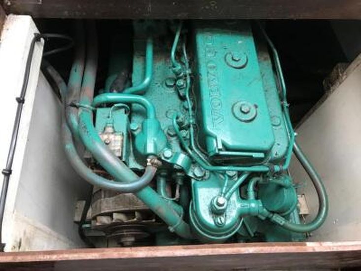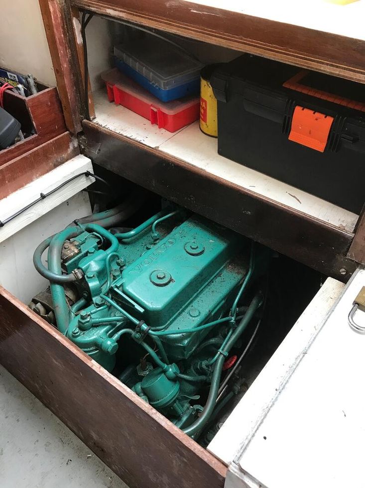 3 cylinder Volvo diesel inboard engine, 2003, new engine beds a coat of Volvo green paint . Electric start. Sited under self draining cockpit and cabin companionway. Shaft driven to fixed propeller, freshwater cooled. Single lever controls, forward and reverse. Heavy duty battery. New stainless steel fuel tank.