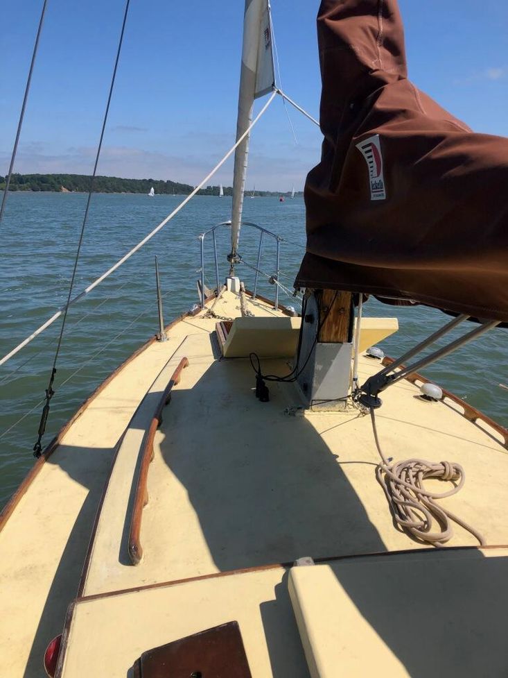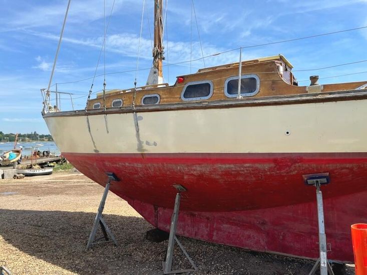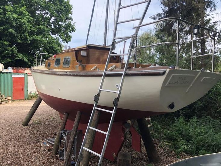 28ft Classic Bermudan sloop, designed and built by David Cheverton and Partners, Isle of Wight in 1959. Originally commissioned for a Marine Charter company, as a Family (of four) Sail Cruiser, now be classed as a Classic. Deck stepped mast gives a clear open space in the cabin. Two settee berths are 6ft 6ins in length. Standing headroom at the aft end of the accommodation.