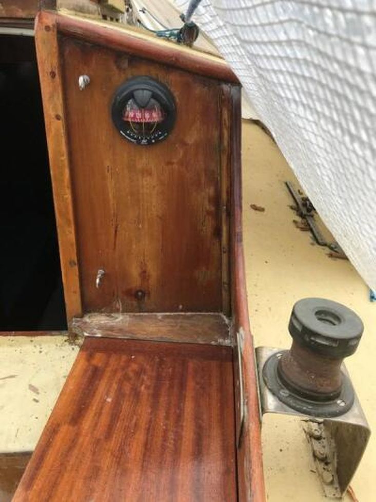 Her present owner has had professional restoration carried out on the vessel .“Works” have included a new self draining cockpit,new engine beds, the engine has been replaced with a good condition, Volvo. In 2024 the garboard planks were renewed. 2016 new, Jeckells sails a new sails and replacement of the stainless steel standing rigging and running rigging. The T& G planking of the decks have been replaced with Epoxy coated marine ply and painted. Her interior is basic but functional.