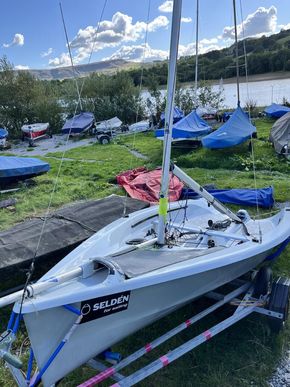 The only small thing to note, is it has a battle scar on the starboard side, it's sealed and repaired, but just needs the correct shade of grey being mixed. And it could do with some new sails for event/ nationals level competitive sailing.