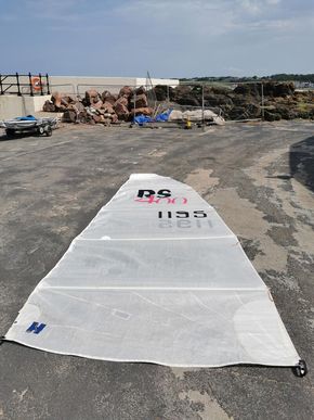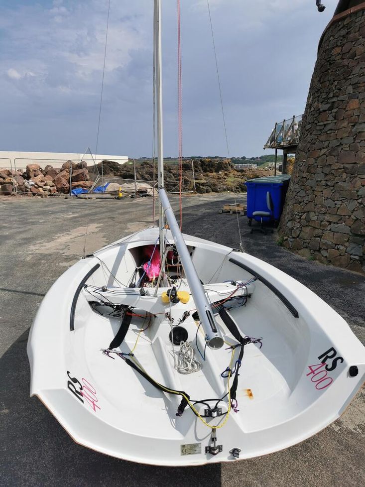RS400 sail no 1195. Good sailing/racing condition. Launch trailer, road trailer, 1 training set of sails 6/10, 1 set of racing sails (dacron) used twice for nationals 9/10. Clean hull, centre board foil good, rudder foil with some gel oat delamination.