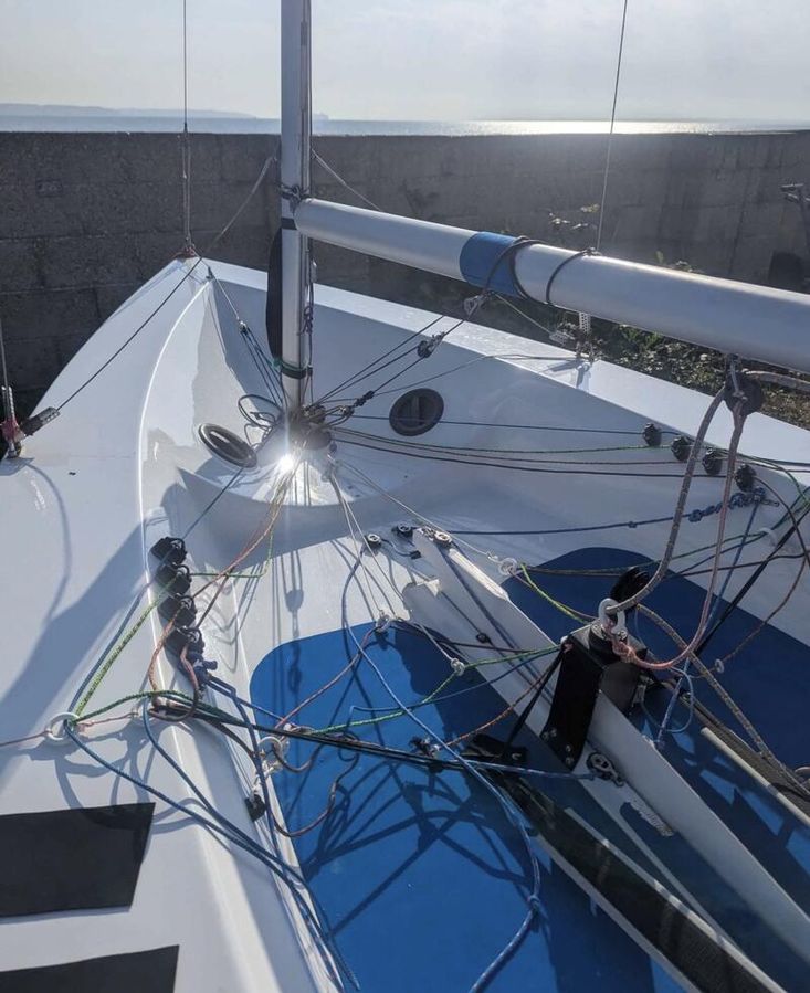 The high-aspect rig with semi-battened 8.5sqm & Mylar laminate sail delivers excellent performance, while the high boom design makes gybing a breeze. Dual control systems make this a highly tuneable and rewarding boat to sail.