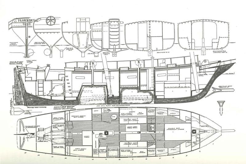 Built by Simon Bullimore and Paul Billings in 1991 to a design of Philip Bolger. Cold moulded construction, with Western Red Cedar and all 3 layers were bonded with epoxy. Blue painted topsides (2023). Mahogany beams. Laminated keels, stem and transom. Twin lifting keels with a lead ballast. The draft is 1.82m when the keels are down and 0.9m when they are raised. Solid mahogany cockpit sole and helm. Teak laid decks onto sheathed plywood sub-deck (2023). Transom hung rudder with wheel steering.