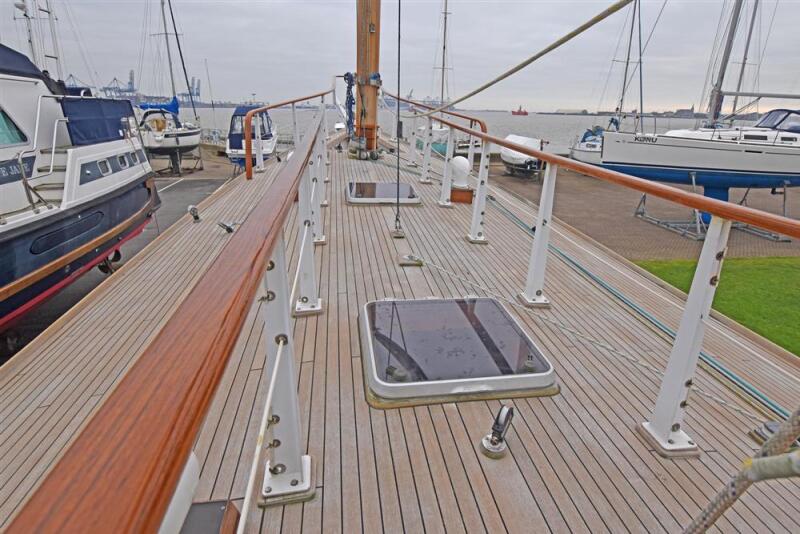 The 2023 refit was carried out in Shotley Marina, Suffolk. This included the new deck, engine rebuild, new bowsprit.