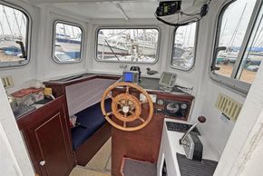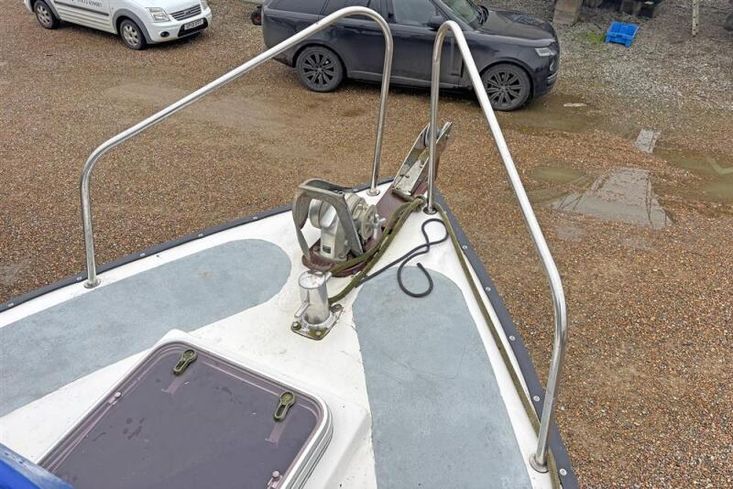 Built in circa. 2004 in Portmadog, Wales. White GRP hull. White GRP hull with a painted non-slip finish. Wheel steering to a transom hung rudder. Bilge runners. Self-draining cockpit.