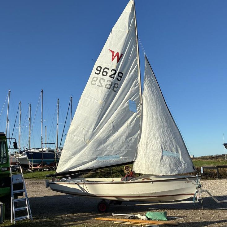 Excellent boat for racing or cruising. Fitted with self-bailers, aft buoyancy/locker compartment. Central main sail.