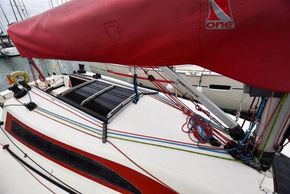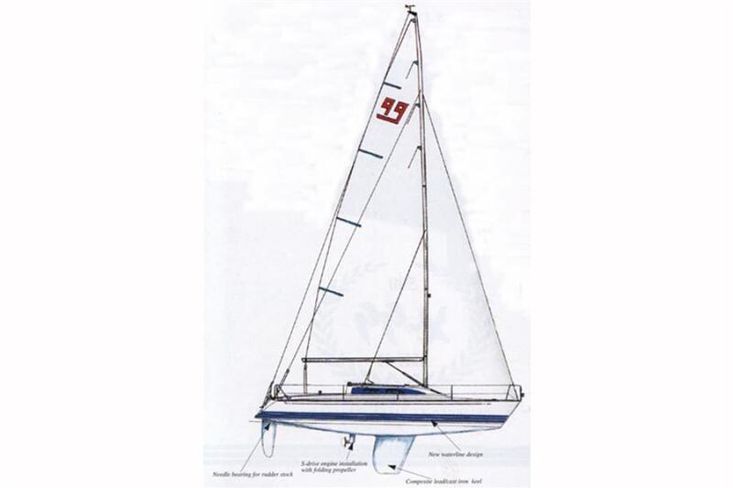 The X-99 was built by X-yachts in 1988 to a design of Niels Jeppesen. Cream GRP hull with red style stripes. Cream GRP deck with a non-slip finish. Alloy toe rail. Fin keel. Tiller steering to a spade hung rudder. Hull number 201.