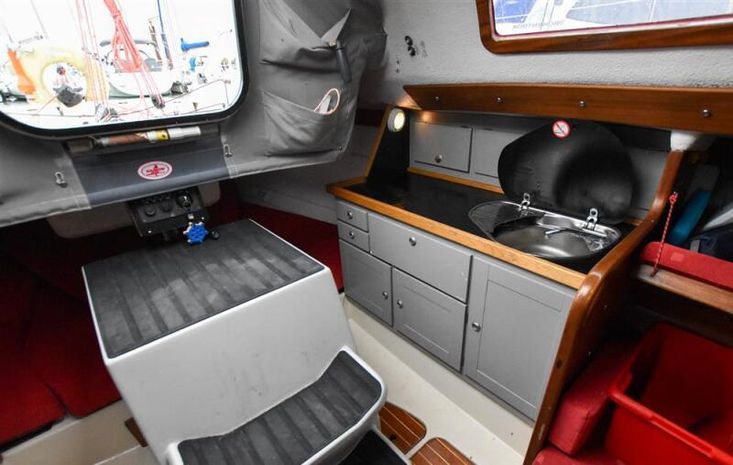 Located under the companionway is a sound proofed engine box is the Yanmar 1GM10 fitted new in late 2020. Single cylinder, 10hp, naturally aspirated. Saildrive to a two bladed folding propeller (both new late 2020). Seawater cooled. Electric start. Single lever controls. Saildrive diaphragm new in 2020. Fully service history until 2023.